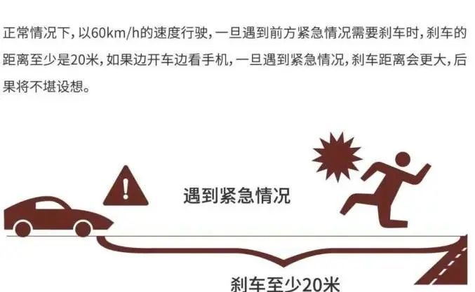 同样的道理,当你开车上路时,看手机哪怕只有一秒,大脑都会先处理关于手机的内容,并不能同时帮你处理开车的需求。而这一秒,在复杂的路况中会有很多种危险的可能发生……