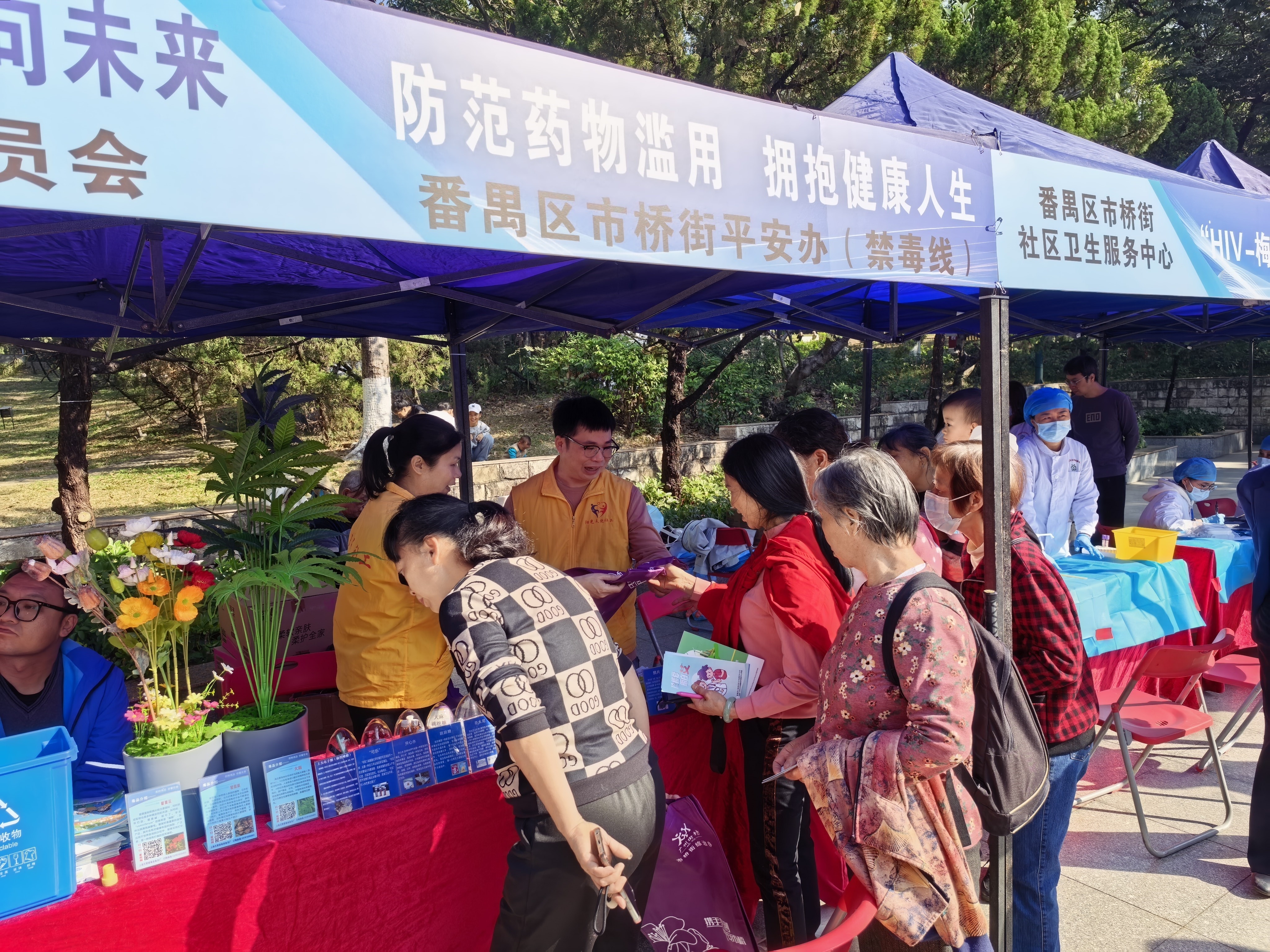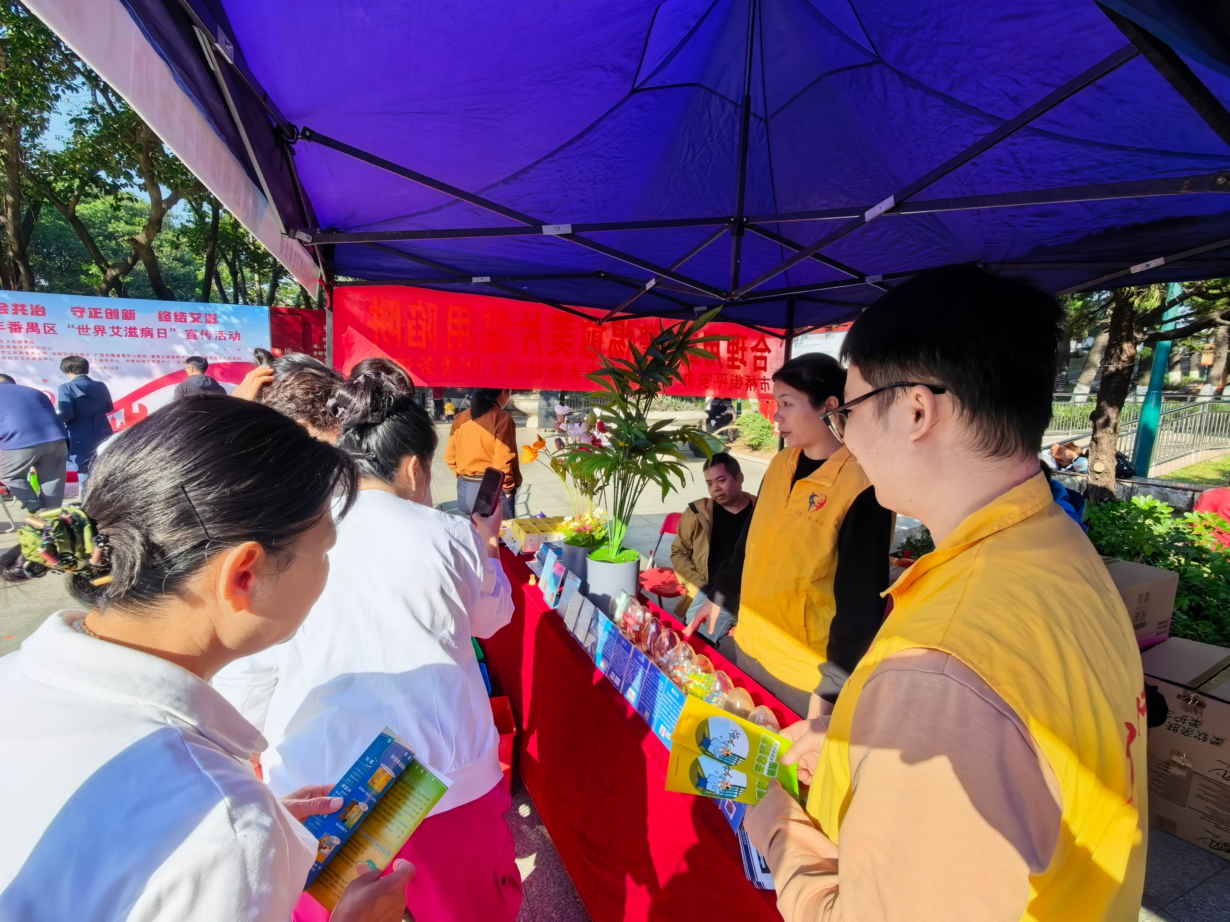 同时,番禺区疾病预防控制中心工作人员向现场群众科普了艾滋病的传播途径与预防方法,解释了群众对艾滋病传播途径的常见误区,以及感染后应对措施。现场各卫生组织医务人员向群众提供了艾滋病预防、健康检查、预防接种咨询、免费测血压血糖等服务。